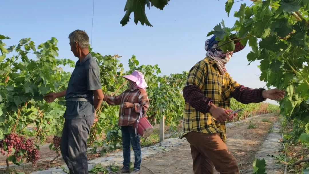村民采摘成熟的葡萄。