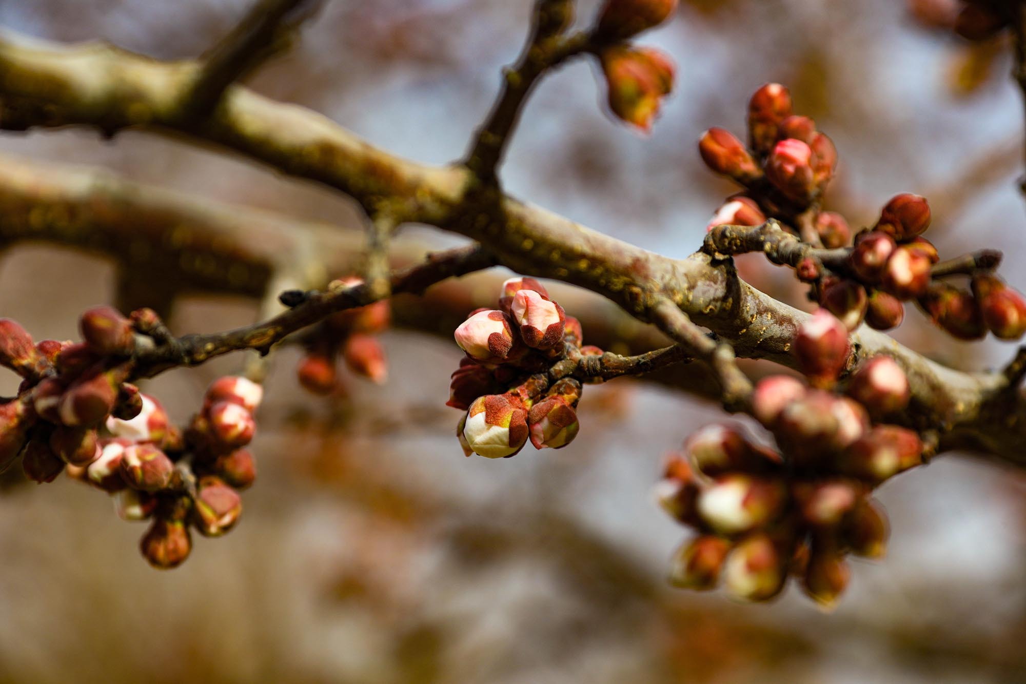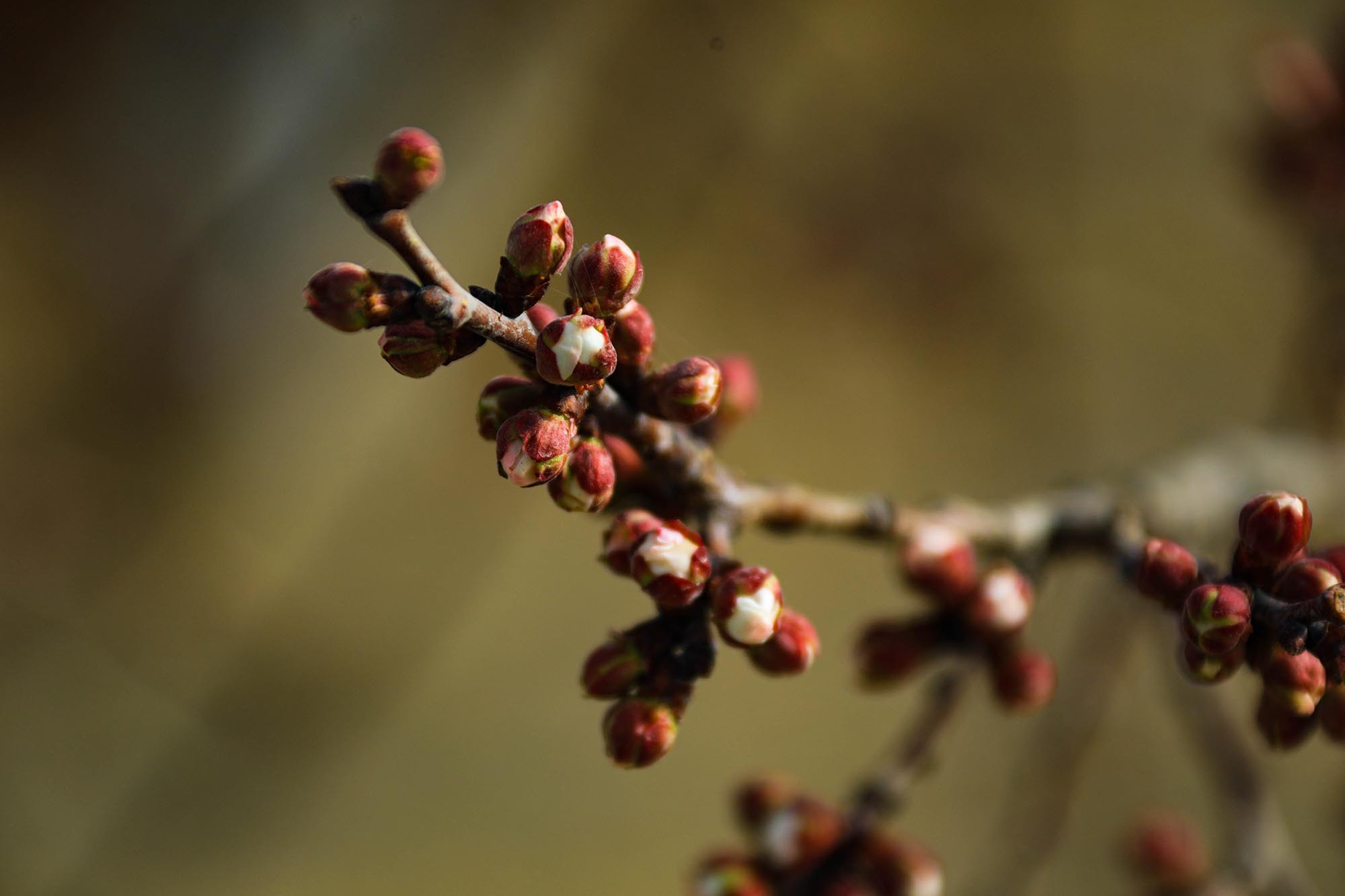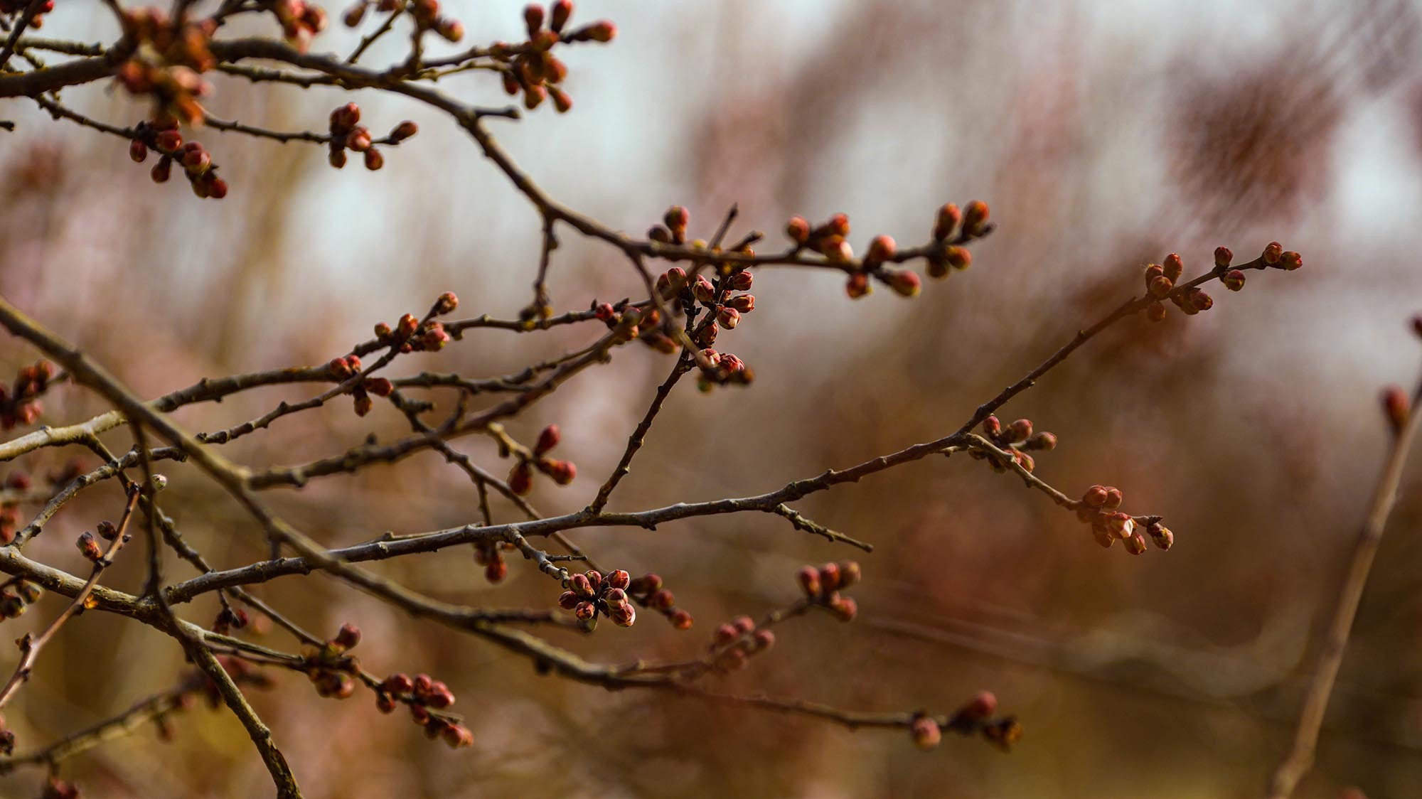 走进南湖村杏园,春日的暖阳温柔地洒在虬曲的杏树枝条上。细心观察会发现,原本褐色的枝梢间,如今已密密麻麻地缀满了饱满的花蕾。这些花蕾个头圆鼓,有的被深红色的萼片紧紧包裹;有的顶端已然裂开细细的缝隙,透出即将绽放的粉白色花瓣边缘,仿佛随时都会挣脱束缚。微风拂过,枝条轻轻摇曳,花蕾静待绽放,传递着春天将至的信号。